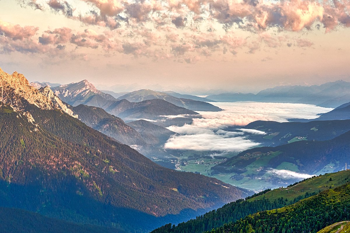 Gestern Abend wettert es noch kräftig vor der Hütte und über den Dolomiten, die wir von der Hütte aus sehen konnten. Auch die Drei Zinnen waren zu sehen, in etwas abgewandter Form, da man die dritte Zinne nicht so richtig erkennt konnte.