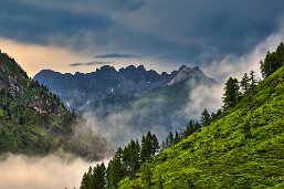 Mir wurde schon komisch. Obwohl wir nicht die höchsten Punkte in der Umgebung bildeten. Der Donner krachte ohrenbetäubend und hallte dann noch nach, wenn sich der Schall an den Tal Wänden brach. Vier fünf Blitze schienen direkt neben uns einzuschlagen, dann zog es doch ab, das Gewitter, und die Zeit zwischen Blitz und Donner nahm zu. Da waren es dann aber auch noch nur ein paar 100 Meter bis zur Hütte. Den letzten Hang gingen wir im Hagel, der mit dem Donner eingesetzt hatte und auch böigen Wind mit sich brachte. Der Weg war ein Bach.