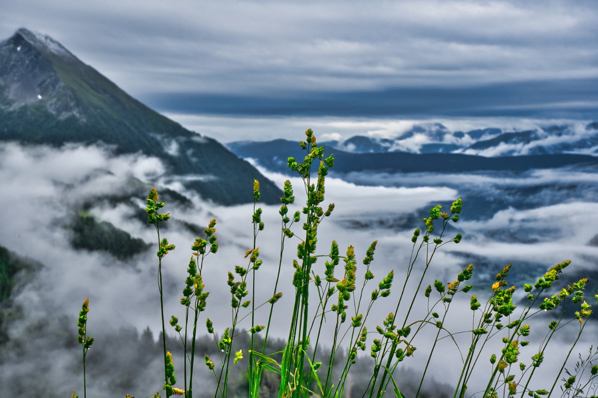 Der heutige Tag war informationstechnisch kompliziert. Laut Beschreibung der Via-Alpina wären wir heute 4 Stunden 5 Minuten unterwegs, Laut Wirt vom Brügge zweimal 5 Stunden. Die Wahrheit lag in etwa in der Mitte. Durch die Taxifahrt hatten wir etwa 300 Höhenmeter gespart, also ungefähr eine Stunde weniger im Regen gehen und eine Stunde weniger Gehzeit. Dann fuhr das Taxi los und ließ uns im Regen gehen. Bis zur ersten Hütte waren es fast 500 Höhenmeter, die wir in etwas mehr als einer Stunde absolvierten. Das war ein ambitionierter Anfang. Auf der Hütte trank ich eine heiße Schokolade von den Almkühen., Toma einen Tee. Auf der Alm lebt eine Familie den ganzen Sommer lang. Jeden zweiten Tag wird die Milch ins Tal gebracht, ein Teil dient zur Selbstversorgung. Toma nutze die Gelegenheit und fragte nach, wie gefährlich die Kühe wirklich sind, und wie man sich verhalten muss. Kühe sind für Wanderer nicht gefährlich, wenn keine Hunde dabei sind, dieser auch noch an der Leine und wenn man nicht zwischen Mutterkuh und Kalb gerät. Doch meisten werden diese, also Mutterkuh und Kälber getrennt gehalten. Also Entwarnung. Das neu - erworbene Wissen fand aber heute noch keine Anwendung. Die Besitzerin der Alm erklärte uns auch den Weg. Bis zur Edelrauthütte waren es noch 2 Stunden. Die bräuchten wir dann in etwa auch. Fototechnisch war heute ein schöner und ein blöder Tag, denn über den Wolken, die Berge im Hintergrund, wenn es aufzog, das sah schon wunderschön aus, aber es regnete ständig und ich musste den Foto immer in dem Zipbeutel verstecken und umständlich wieder herausholen. Wir kamen am See unterhalb der Edelrauthütte an und stiegen in einer halben Stunde über mehrere Schneefelder auf. Die Hütte ist sehr schick. Rings herum lag noch Schnee. Das Wetter war die letzten drei Wochen schlecht, also heute war es sozusagen wie immer. Die Hütte sehr modern, riesige Fenster und einen wunderschönen Schankraum verleitete uns zum Mittagessen. Das hatte ich auch dem Wirt versprochen, als ich vor einer Woche nach einer Übernachtung gefragt hatte. Wir fragten, wieviel Via-Alpina-Wanderer so vorbeikommen. Wenig, meist Wanderer, die alleine unterwegs waren, maximal zu Zweit. Und pro Woche vielleicht drei Wanderer. Macht bei etwa 10 Wochen Wanderzeit im Jahr 30 Leute, die sich auf die Via Alpina begeben. Vor kurzem war auf der Hütte ein Belgier, Karel Sabbe, der die Strecke gerannt ist. 80 - 90 km am Tag (das sind 4-5 normale Tagesetappen). Sein Lauf wurde von einem Team gefilmt. Da muss ich unbedingt mal googeln. Von der Edelrauthütte bis zur Chemniterhütte gibt es zwei Wege, den Höhenweg, 4. 45 Stunden und den Weg übers Tal 4 Stunden. Wir nahmen den schnelleren und waren noch schneller 3. 40 Stunden. Doch wer will auch schon im Regen lange laufen? Ich schreibe das in der Hüttenstube der Chemnitzer Hütte, wir sind geduscht, haben unseren Durst gestillt und wenn ich könnte Ton einfügen, wieviel schöner wäre der Bericht wohl. Schon seit mehr als einer Stunde hören wir Ziacha-Musik, zu Beginn sogar gepaart mit Gitarrenklängen. Die Musikanten wechseln auch. Es ist eine Stimmung in der Hütte, einfach gemütlich, ehrlich, die Jugend, ach so die Ziachaspieler sind ganz junge Leute, Tiroler, die halt bei jeder Gelegenheit und Nichtgelegenheit feiern und heute scheint eine von beiden zu sein. Die Ziacha ist eine Zwetschkomode, vielleicht ein wenig abgewandelt, aber der Klang ist ähnlich, vielleicht eine Abwandlung von einem Bajan, da es nur Knöpfe, keine Tasten hat. Wir haben das Glück eine Nacht in eine große Familie aufgenommen worden zu sein. Auch gestern die Gespräche mit den München-Venedig Wanderern waren sehr schön. Jetzt sind wir auch satt. Die Hälfte habe ich auf dem Teller gelassen. Die Portionen sind hier für Holzfäller. Für Toma hat der Koch sogar etwas Veganes gezaubert. Der Hüttenwirt hat mir schon den Weg für morgen erklärt und auf der Karte gezeigt. Man wird umsorgt.