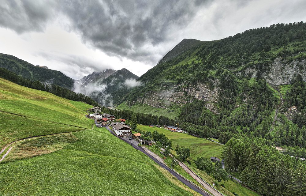 Toma erstürmte die Berge, die Angst im Nacken ins Gewitter zu kommen, doch der Blick nach oben ließ nichts Gutes erwarten. So legten wir die Strecke, die wir ja schon 2017 gelaufen waren, zügig zurück. Sogar ein wenig vor der Zeit erreichten wird den Pfitscherpass. Das Gewitter war noch nicht da und so ließ ich meine Drohne steigen, trotz ziemlichen Windes. Gestern hatte ich sie auch schon in Mayrhofen steigen lassen (obwohl das eine Helizone war, was ich aber erst danach entdeckte, weil ich dachte, dass auf der Reise keine Einschränkungen sein werden.