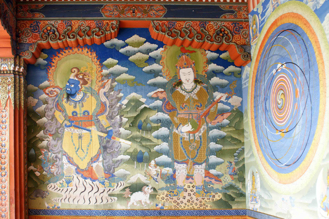 in the Bumthang District of central Bhutan is the most important Nyingmapa temple in Bhutan. The temple and monastery are remarkable for their direct connection to the Bhutanese saint Pema Lingpa. It is now a seat of Lama Sungtrul Rinpoche the current speech incarnation of Pema Lingpa. Tamshing consists of a deteriorating temple and cramped monks quarters. The monastery supports a body of over 95 monks. From an interview of Lopen Kharma, teacher and administrator of Tamshing Lhakang, conducted by Friends of Tamshing in December 2005: The temple was built by Pema Lingpa himself in 1501. Before 1960 Tamshing was a privately owned temple (like many other temples in Bhutan). After Pema Lingpa died in the temple at the age of seventy-two in 1521, his descendants took over care of the temple. Gradually, over many years, Tamshing fell into a state of disrepair and neglect. The temple courtyard was used as a granary and local people came less and less, except for special days. In 1959, when many Tibetans (including the present Dalai Lama) fled their country for fear of being killed quite a few came to the Bumthang region, which is the cradle of Buddhism in Bhutan. In his time, Pema Lingpa received a vision to travel to Tibet where he revealed a treasure hidden by Guru Rinpoche (Padmasambhava) many centuries before. He was given land in the Longti area of the Siti valley and built a temple there which is called Lhalung. |