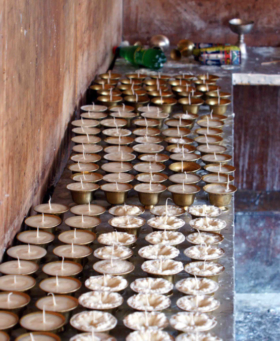 Um seine Sünden zu büßen, liegt im Tempel ein Metallgeflecht, das ein Brückenbauer gesponsort hat, mit einem Gewicht von 25 kg, welches man auf dem Rücken 3 Mal um den Tempel tragen muss, damit alle Sünden vergeben werden. Was wir auch erfuhren, war, dass der Wachs aus den Butterlampen aus Indien importiert wird. |