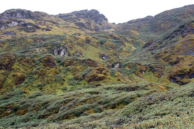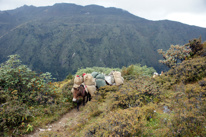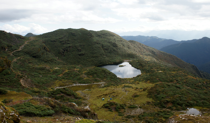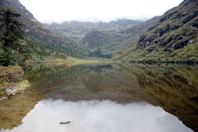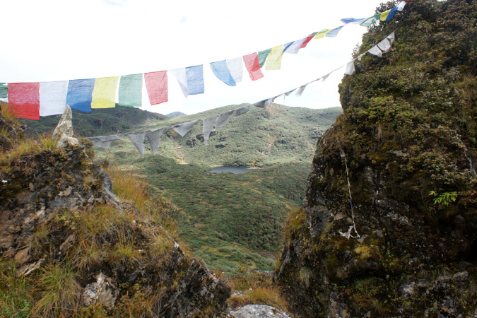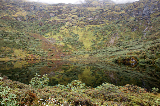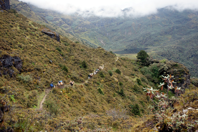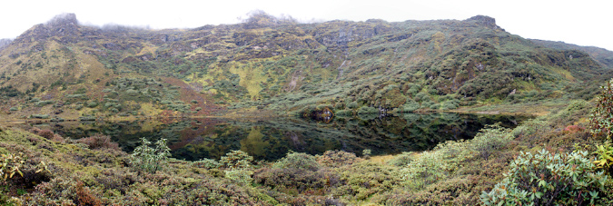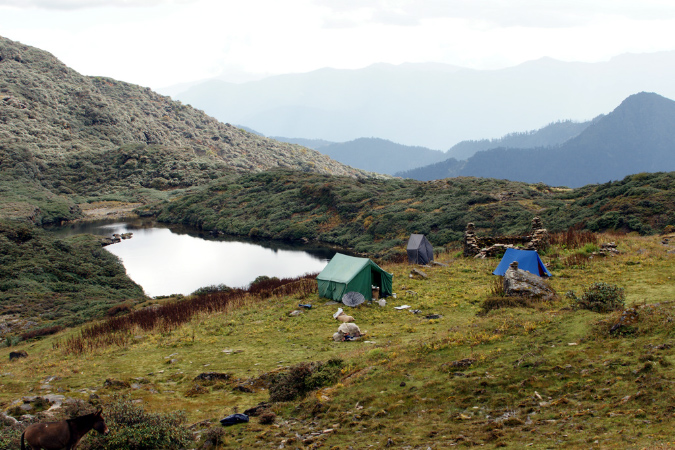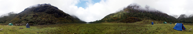 Aus der Reisebeschreibung: Altitude - 3,834 m. Distance - 11 km. The trail goes through dwarf rhododendron trees and passes by the lake of Janetsho. One may come across some yak herders’ camps and one can see to how they live. Camp is close to Simkotha Lake if have any desire to have trout for dinner there is a good chance to do fishing. Over night: Camping