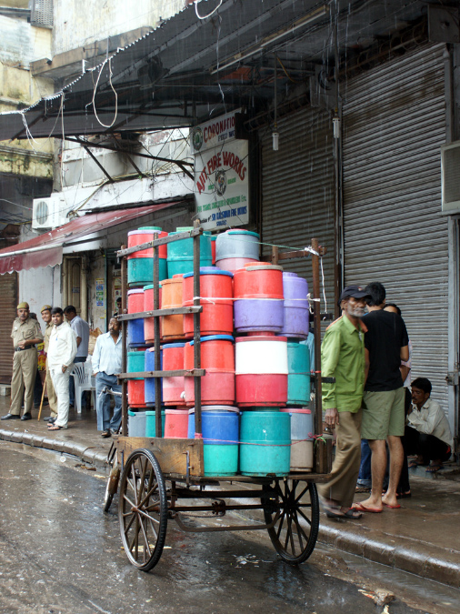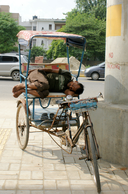 Wir machten Halt am Indiengate, besuchten das Humayan’s Tomb, aßen zu Mittag und spazierten über einen Basar / Markt ( großen Ramschladen) mit allen möglichen Verkaufständen, von Lebensmitteln, Gewürzen, Tupperware, Stoffen bis hin zu gekochten und gebratenen Hühnern und Gebäck. Die Menschen leben auf der Straße, die besonders Armen wohnen auch hier. Gleich neben Baustellen entstehen Zeltlager aus Planen und Seilen, die notdürftig vor Regen schützen. Der Transport ist sehr vielfältig vom Rikscha über Tuktuks bis hin zum Mercedes S Klasse. Hupen gehört zum guten Ton und an manchen Rückwänden von Lastern steht „Horn please“. Die heiligen Kühe gehören ebenso zum Stadtbild, wie wilde Stromverteilungen, nicht enden wollende Baustellen, viel Grün im Stadtzentrum New Delhis. |