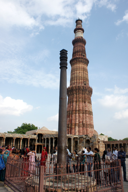 Die Sehenswürdigkeit, die uns am besten gefiel war das Qutub Minar, ebenso ein World Heritage. Es war nicht nur das riesige Minarett, sondern vor allem die bunt gekleideten Inderinnen ringsherum. Hier konnte ich ausgiebig die Frauen fotografieren. Diese forderten einen geradezu dazu auf. Sie wollten sich auch mit uns fotografieren lassen. Ich habe es nicht erlebt, dass Fotografieren von Personen (mal abgesehen von verschleierten Frauen, die ich von mir aus nicht abgelichtet hätte) zu Missfallen geführt hätte, Protesten oder beschämten Abwenden. Im Gegenteil, wenn ich die Kamera auf Inderinnen oder Inder richtete, forderten diese mich geradezu zum Fotografieren auf und lächelten. (Was für ein Glück für mich, aber war es auch Glück für sie?) Meistens musste ich mich als Gegenleistung auch mit ihnen fotografieren lassen. Toma war ein begehrtes Objekt. So ganz nebenbei entdeckten wir die Eiserne Säule nur ein paar Meter entfernt von dem Minarett. Da das Minarett sich in der Einflugschneise des Flughafens befand, passierten die startenden Flugzeuge den Turm und es entstand der Eindruck, dass der Flieger in den Turm kracht. Vor dem Essen haben wir noch das Mahatma Gandhi Museum besucht. Gegen 18.00 Uhr kehrten wir ins Hotel zurück, völlig erschöpft. Ich hatte eigentlich keine Kraft und auch keinen Hunger mehr, um noch etwas zum Abend zu essen. Toma bestand aber darauf. Wir schliefen mehr als 12 Stunden und hatten somit unsere Zeitumstellung geschafft. |